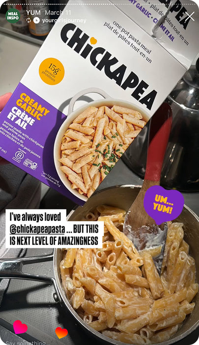 A creamy, dreamy blend of real cheese and spices, paired with our two-ingredient chickpea and yellow pea pasta.